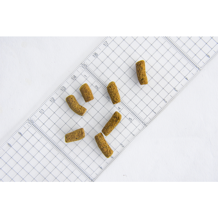 - 肉類(家禽ミール、チキンレバー加水分解物)、セルロース(食物繊維源)、ビートパルプ(食物繊維源)、油脂類(植物油、動物性脂肪)、イモ類(ポテト、ポテトタンパク)、穀類(コーングルテン、大麦)、豆類(エンドウ豆、大豆抽出物)、果実類(リンゴ)、キャロブ豆さや(食物繊維源)、イースト、種実類(亜麻仁)、アルファルファ、酸化防止剤(植物由来トコフェロール)、ビタミン類(塩化コリン、E、C、ナイアシン、パントテン酸、B2、B1、A、B6、K3、葉酸、ビオチン、B12、D3)、ミネラル類(Zn、Fe、Mn、Cu、I、Se)、Lカルニチン