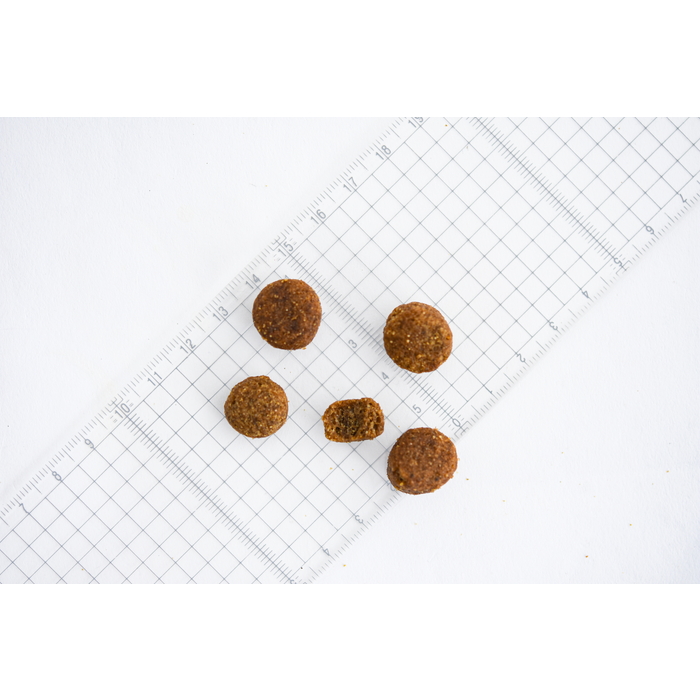 成分 分析値 単位 タンパク質 26.63 %DM 脂肪 9.24 %DM 繊維 1.63 %DM 灰分 7.61 %DM 炭水化物 54.89 %DM カルシウム 0.87 %DM リン 0.6 %DM ナトリウム 0.54 %DM マグネシウム 0.08 %DM カリウム 0.92 %DM リジン 1.52 %DM メチオニン 0.43 %DM シスチン 0.21 %DM スレオニン 0.87 %DM トリプトファン 0.27 %DM リノール酸 1.3 %DM α-リノレン酸 0.22 %DM アラキドン酸 0.02 %DM EPA 0.11 %DM DHA 0.11 %DM オメガ3脂肪酸:オメガ6脂肪酸 1:3.4